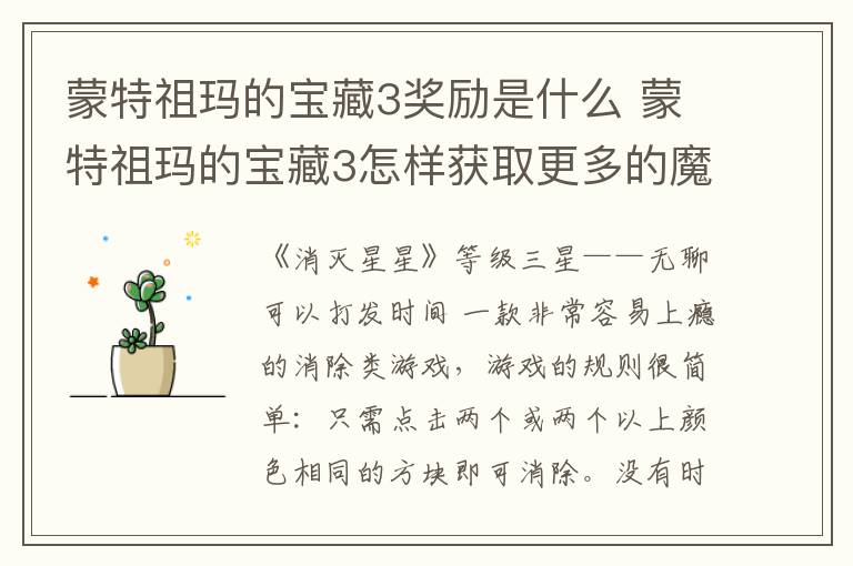 - 蒙特祖玛的宝藏3奖励是什么 蒙特祖玛的宝藏3怎样获取更多的魔法之星