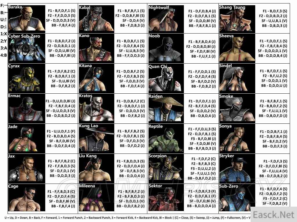 真人快打9:完全版 全人物出招表一览加了人名和PS3的键位,需要的同学可以参考。上图应该包含必...