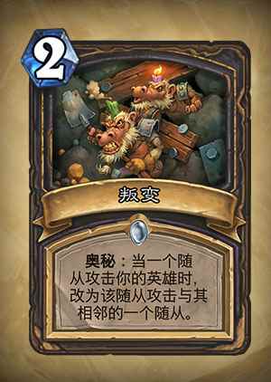 叛变是炉石传说狗头人版本新推出的猎人法术卡,作为普通品质新卡相较于其他卡牌,合成费用低,对于...