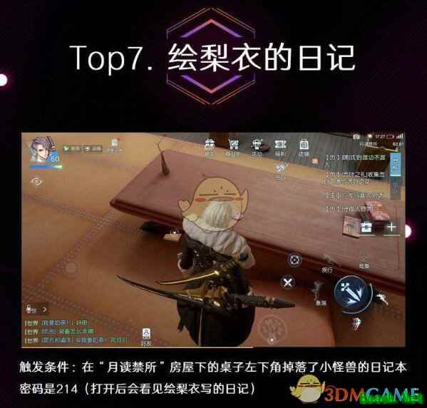 密码是“214”。偷窥绘梨衣的日记本:策划将绘梨衣写的日记设计成了一个异闻,玩家们在游戏里的...