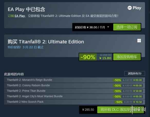 Steam春季大促正在进行中,EA的《泰坦陨落2》也开启了史低促销活动,终极版打1折,只要15.8元!...