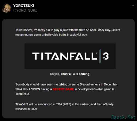 - 《泰坦陨落3》或于2025年公布,2026年发售