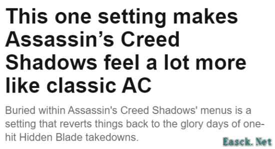 育碧官方已经确认,刺客信条:影将为玩家提供一个可选功能,允许开启必定一击必杀的刺杀模式。为了...
