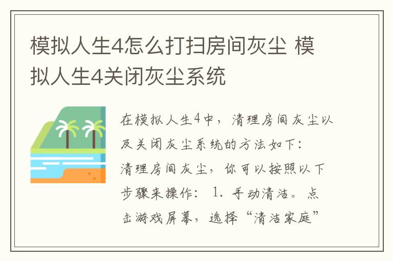 - 模拟人生4怎么打扫房间灰尘 模拟人生4关闭灰尘系统