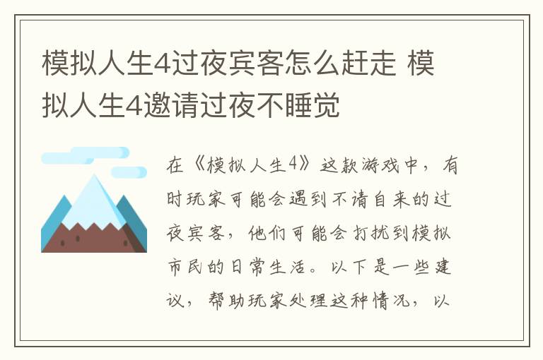 在《模拟人生4》这款游戏中,有时玩家可能会遇到不请自来的过夜宾客,他们可能会打扰到模拟市民...