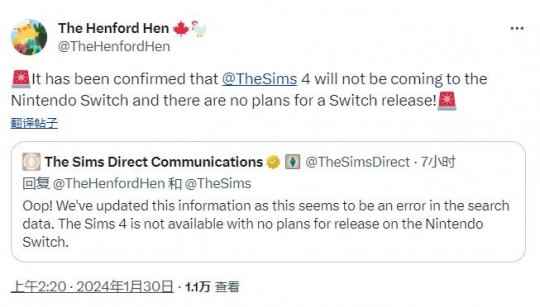 - 官方澄清《模拟人生4》登陆Switch:没有这个计划