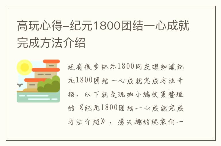 还有很多纪元1800网友想知道纪元1800团结一心成就完成方法介绍,以下就是玩咖小编收集整理的《...