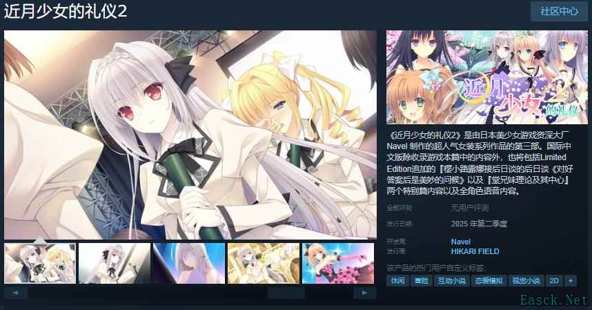 今日(3月15日),橘子社作品《近月少女的礼仪2/Tsuki ni Yorisou Otomeno Sahou 2》Steam页面上线,预定2025年第二季度发售,游戏支持简繁体中文,感兴趣的玩家可以