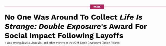 - 《奇异人生:双重曝光》GDC获奖但无人领取