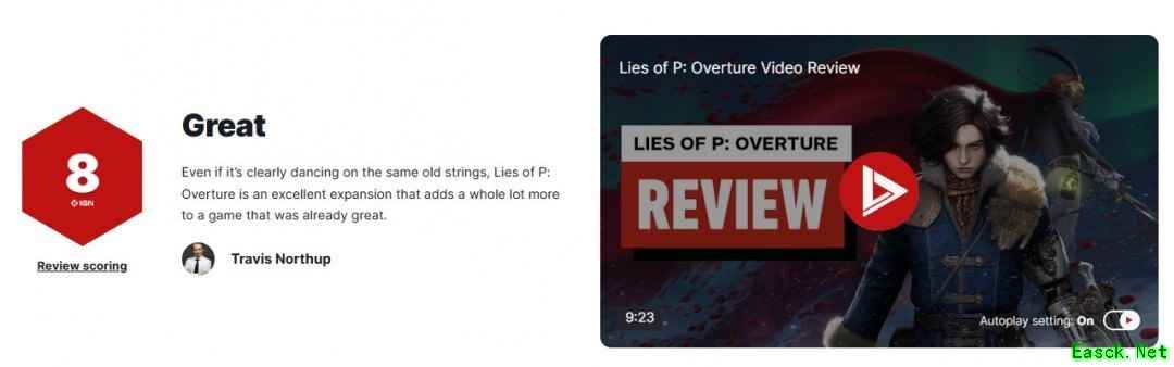 - 《匹诺曹的谎言DLC序曲获IGN 8分好评》