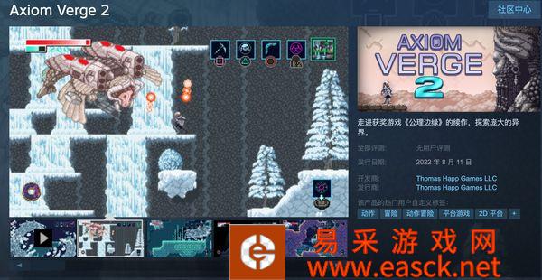 银河恶魔城游戏《公理边缘2(Axiom Verge 2)》现已结束Epic独占,在Steam商城正式发售,并开启了首...