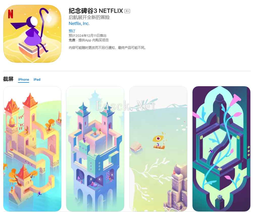 - Netflix 独占游戏《纪念碑谷 3》明日发售,登陆 iOS 及安卓平台