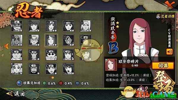火影忍者手游里的漩涡玖辛奈是主角鸣人的母亲,也是上一代的九尾人柱力,那么漩涡玖辛奈里的基础...
