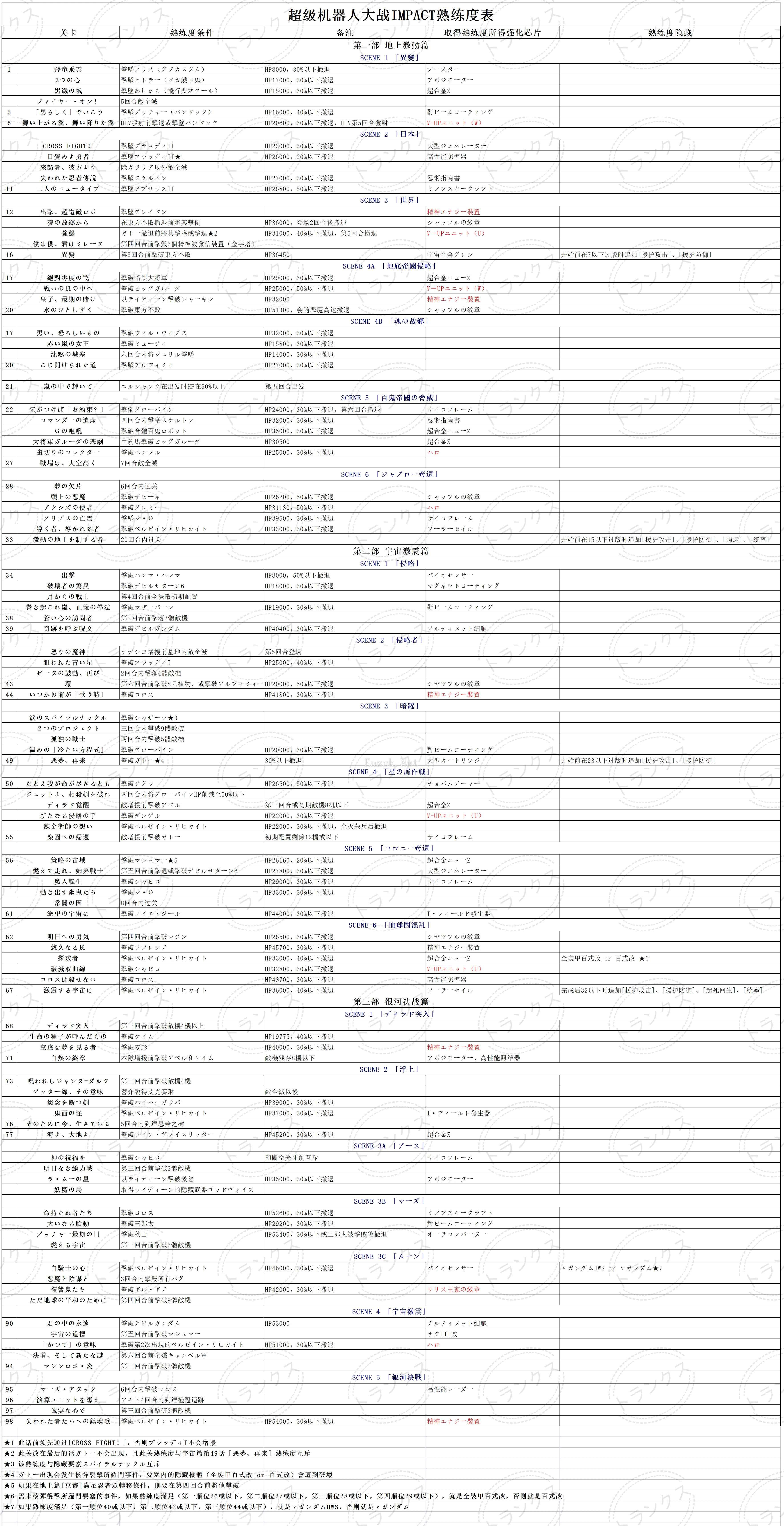 - 超级机器人大战IMPACT熟练度攻略 熟练度查询表