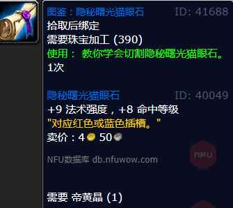 - 魔兽世界隐秘曙光猫眼石怎么获得