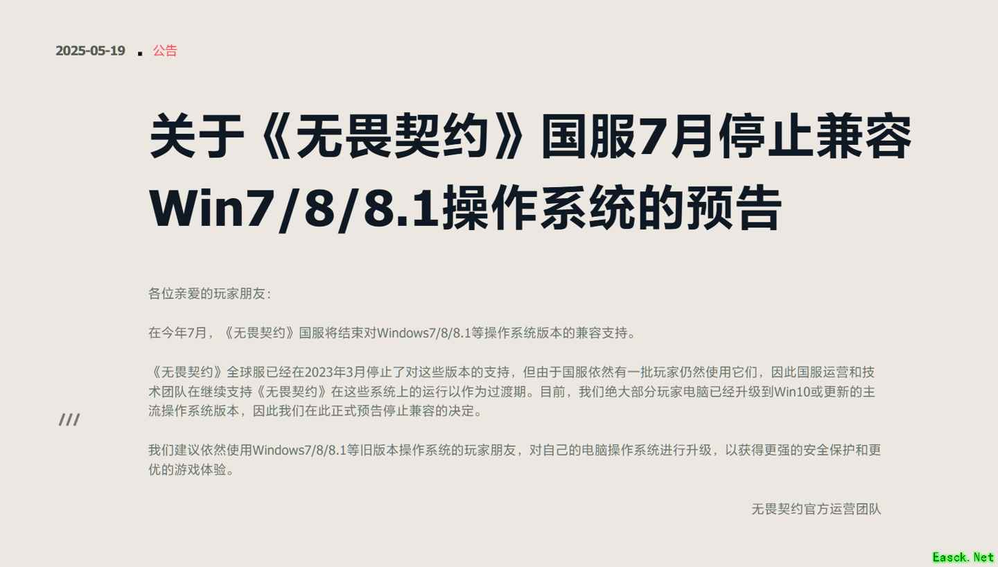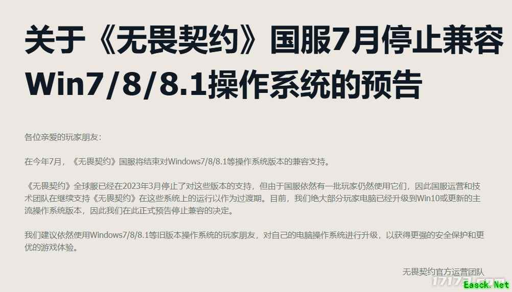 - 腾讯官宣:《无畏契约》国服7月将停止兼容Win7/8