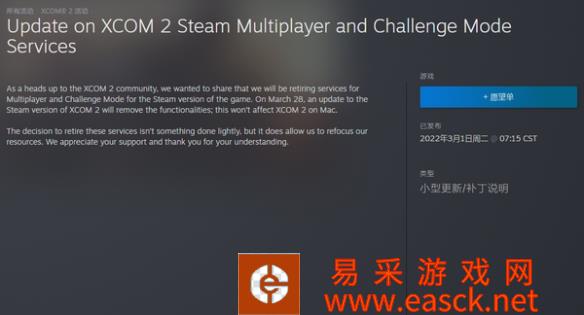《幽浮2(XCOM 2)》游戏官方于今日(3月1日)在Steam商城发布公告,宣布将于3月28日关闭Steam版游戏的...