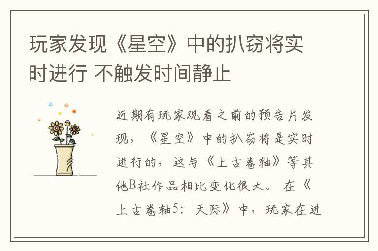 近期有玩家观看之前的预告片发现,《星空》中的扒窃将是实时进行的,这与《上古卷轴》等其他B社...
