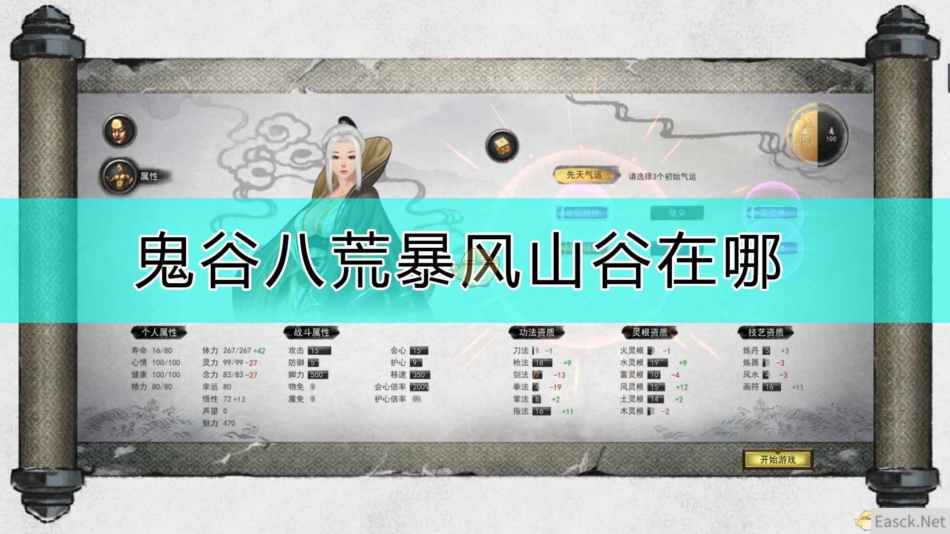 《鬼谷八荒》暴风山谷的位置是随机的,里面会掉风灵珠的材料,用于天道筑基,很多玩家可能找不到暴...