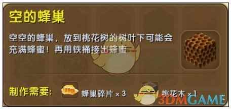 这次介绍《迷你世界》中的空的蜂巢,放到桃花树下过段时间就会充满蜂蜜,然后就可以取出来,获得蜂...