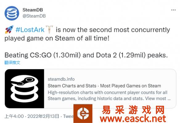 《失落的方舟(Lost Ark)》已成为Steam上为数不多的同时在线人数超过100万的游戏之一。不仅...