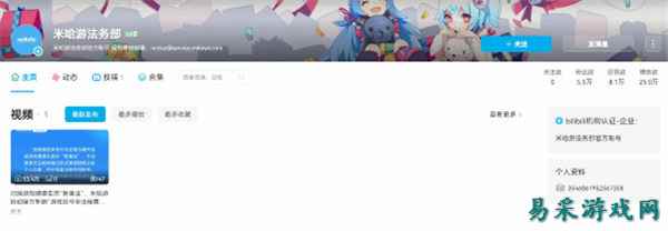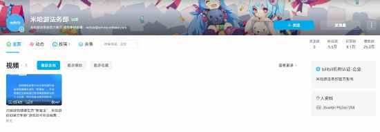 - 米哈游法务部入驻B站首视频获五十万播放八万点赞
