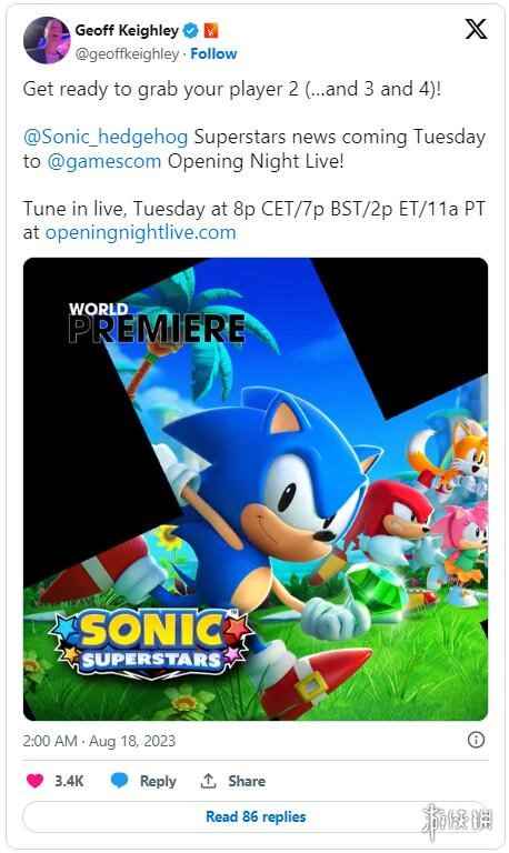 - 《索尼克:超级明星》确认亮相科隆游戏展开幕之夜
