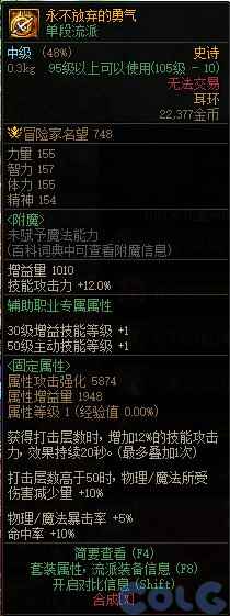 DNF神界版本新增了很多史诗装备,这些史诗装备有些是固定属性的,属性都很强力,比如永不放弃的勇...