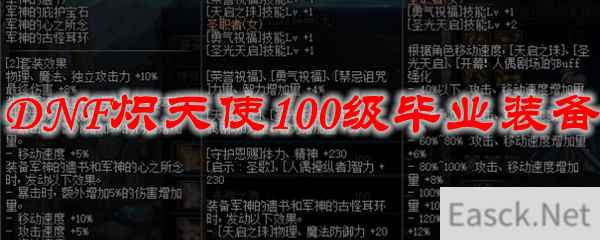 DNF中炽天使100级毕业装备推荐是:一、噩梦:地狱之路套装 + 幸运三角套装 + 军神的隐秘遗产套装...
