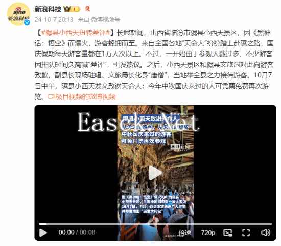 新浪科技报道,长假期间,山西省临汾市隰县小西天景区,因《黑神话:悟空》而爆火,游客蜂拥而至。来自...