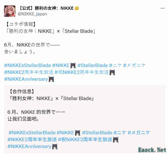 - 《妮姬》与《剑星》六月联动:伊芙角色闪耀登场