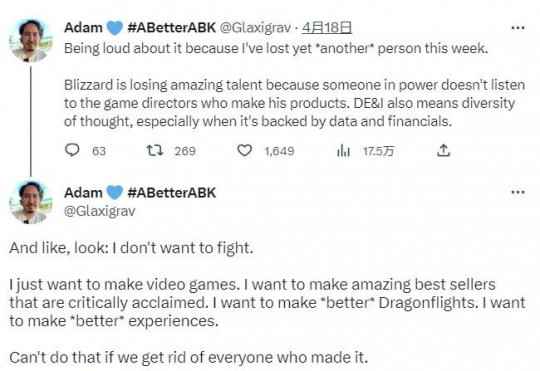 - 《魔兽世界》开发者称暴雪正在流失人才:高层一意孤行无视意见