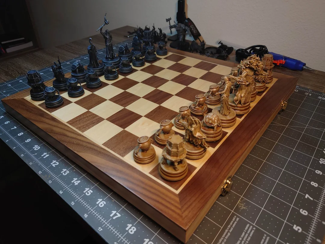 Reddit用户GreenyRepublic分享他自制的《艾尔登法环》版国际象棋,采用树脂3D打印完成,效果...