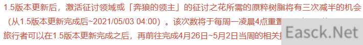 - 原神1.5版本原粹树脂消耗减半活动一览