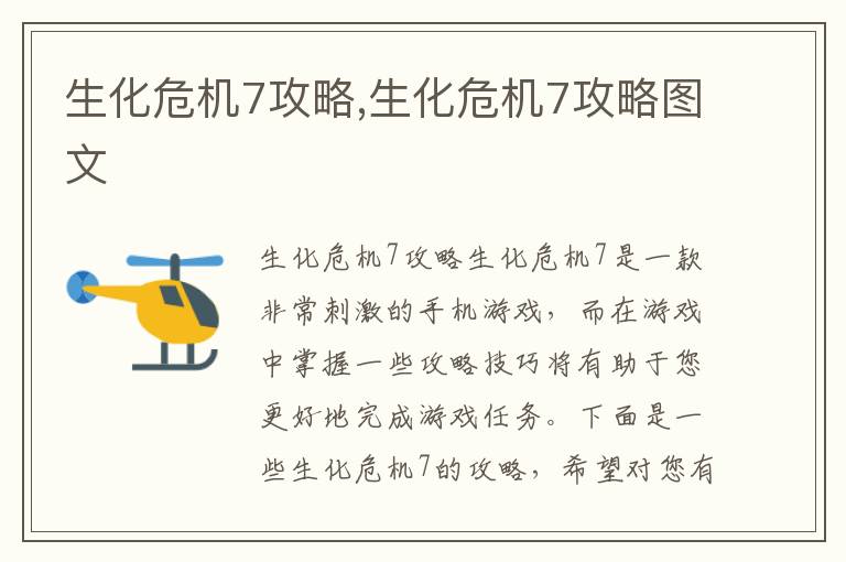 生化危机7攻略生化危机7是一款非常刺激的手机游戏,而在游戏中掌握一些攻略技巧将有助于您更好...