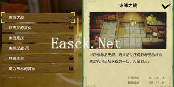 在动作冒险游戏塞尔达传说智慧的再现中有一种竞速玩法瞌睡道场,其中有一个为束缚之战风,部分玩...