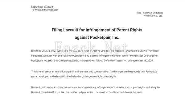 - 东半球最强法务出手!任天堂起诉《幻兽帕鲁》专利侵权