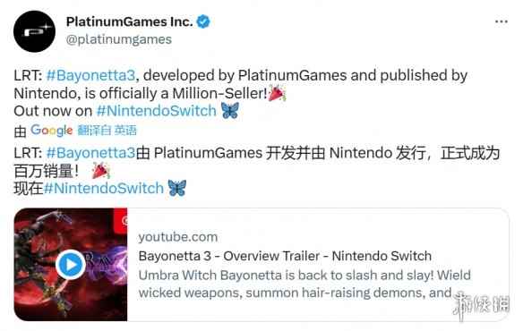 昨天任天堂公开了22-23财年第三季度财报,其中公开了《猎天使魔女3(Bayonetta 3)》的销量,本...