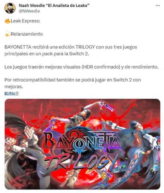 - 传闻:《猎天使魔女》三部曲将登陆Switch 2