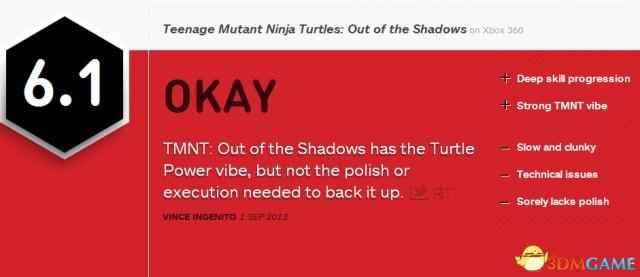 - 糟糕体验 《忍者神龟:冲出阴暗》获IGN 6.1分评价