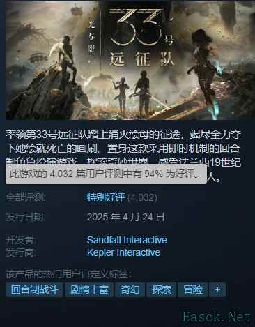 - 《光与影33号远征队开发成本低于征服和镜之边缘》