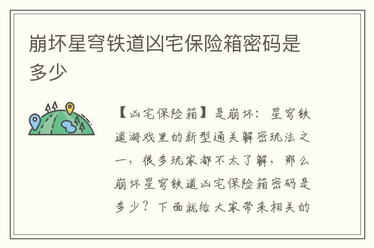- 崩坏星穹铁道凶宅保险箱密码介绍