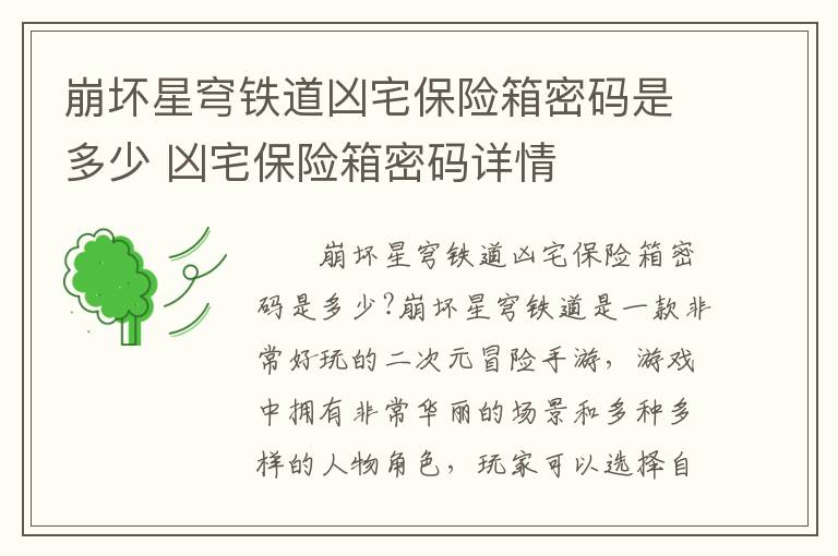 崩坏星穹铁道凶宅保险箱密码是多少?崩坏星穹铁道是一款非常好玩的二次元冒险手游,游戏中...