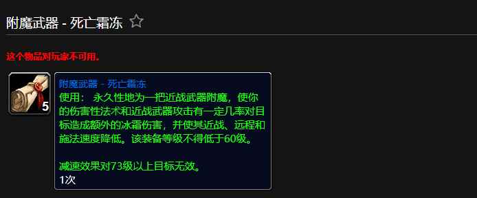 - 魔兽世界附魔武器死亡霜冻有什么用