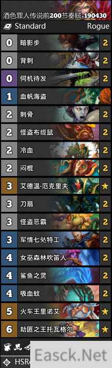 - 《炉石传说》暗影崛起大神酒色罪人传说前200节奏贼卡组推荐
