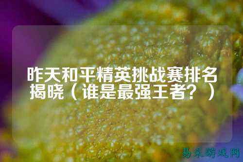- 昨天和平精英挑战赛排名揭晓(谁是最强王者?)