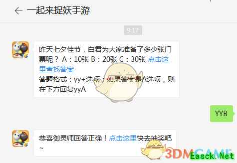 昨天七夕佳节,白君为大家准备了多少张门票呢?一起来捉妖8月9每日一题更新了,各位玩家们应该还不...