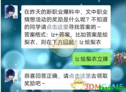 - 在昨天的新职业爆料中,文中职业猜想活动的奖励是什么呢