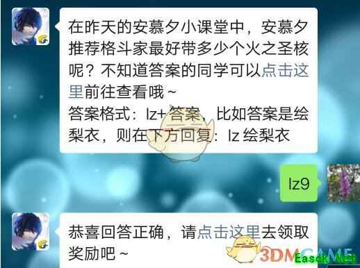 - 在昨天的安慕夕小课堂中,安慕夕推荐格斗家最好带多少个火之圣核呢