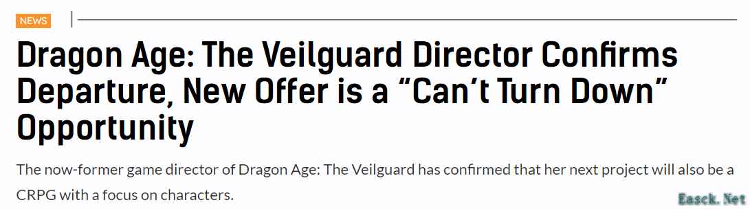 - 龙腾4跨性别总监离职公告:自述助生软恢复运营之路